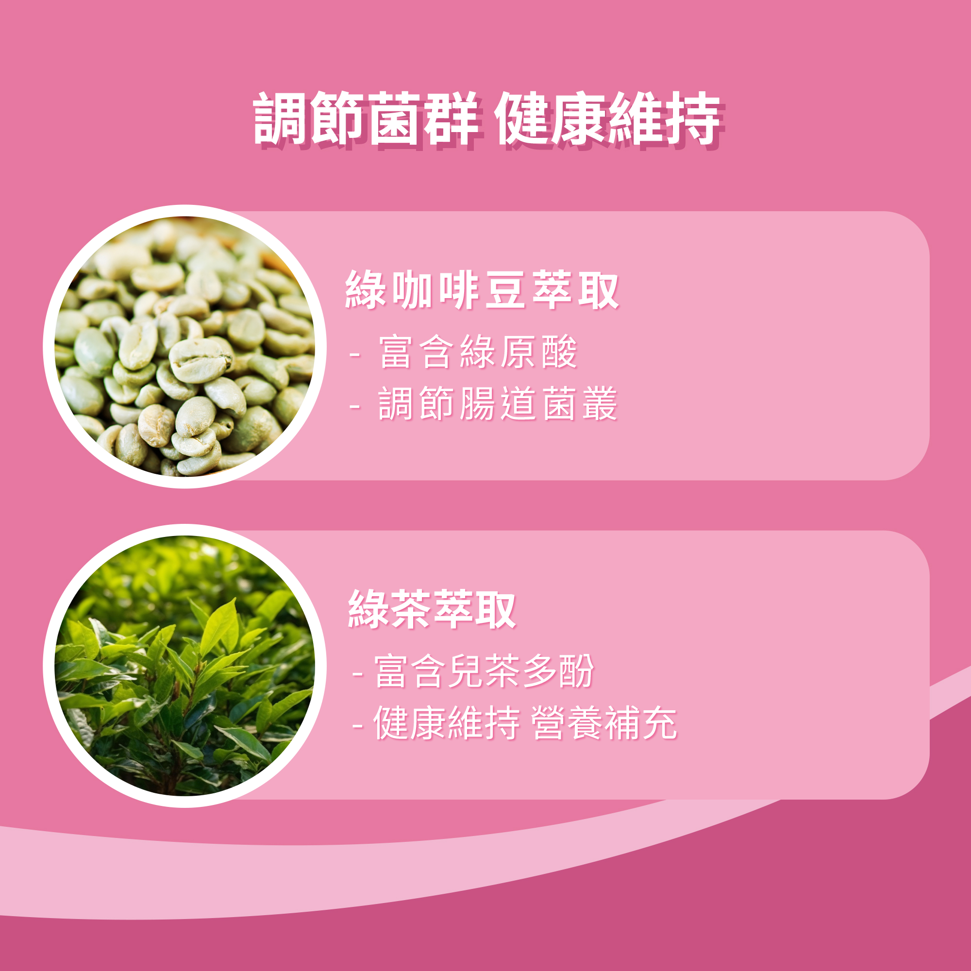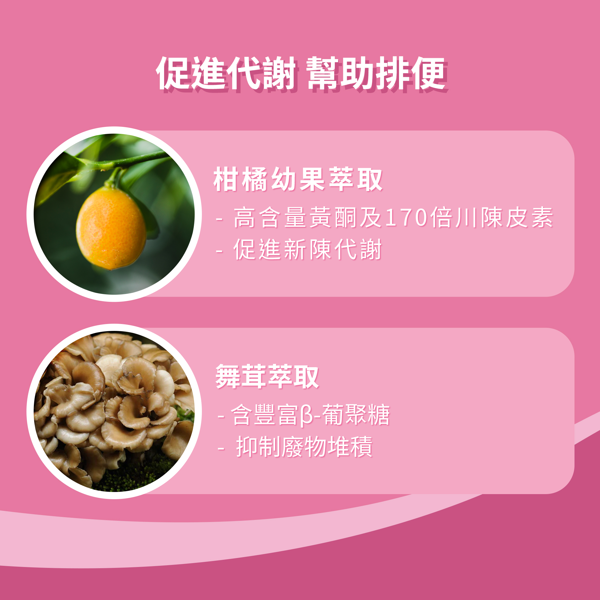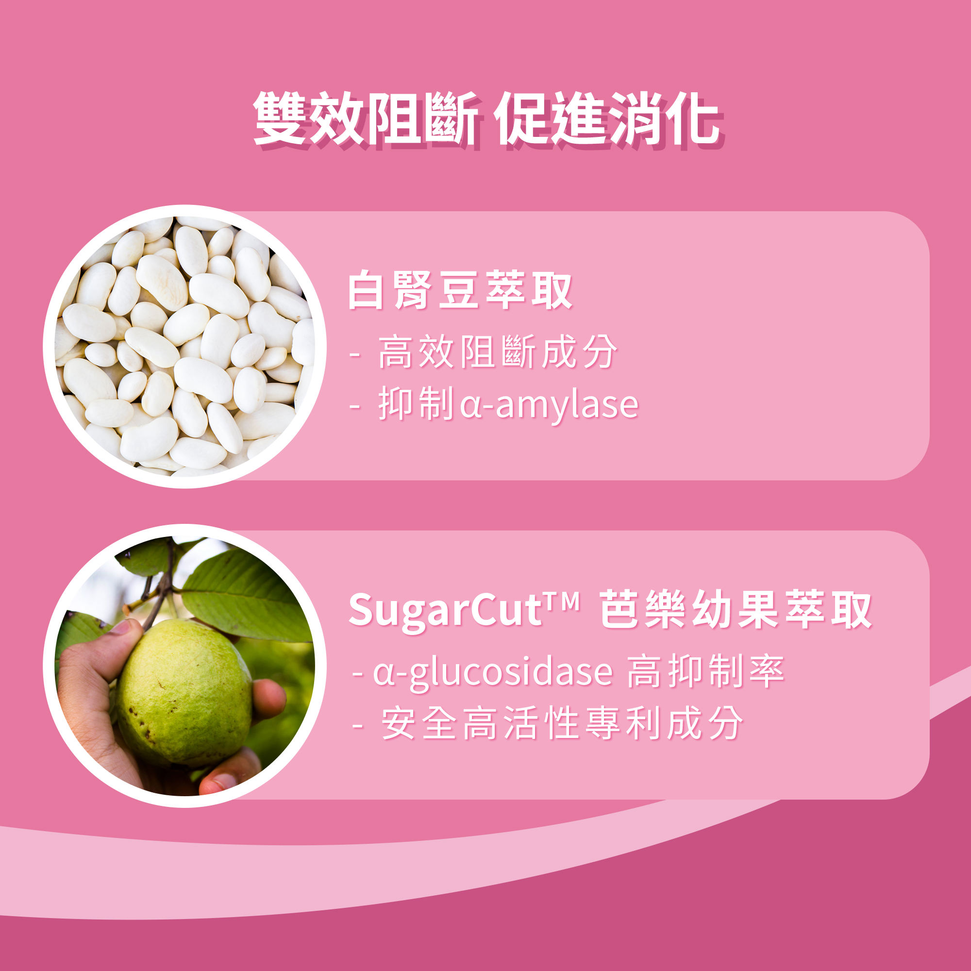 芭樂萃取粉、白腎豆萃取粉、柑橘幼果萃取粉、甜櫻桃汁粉、紅甜菜粉、黑醋栗果汁粉、綠茶萃取粉、青咖啡豆萃取粉、舞茸萃取粉、肉桂萃取粉